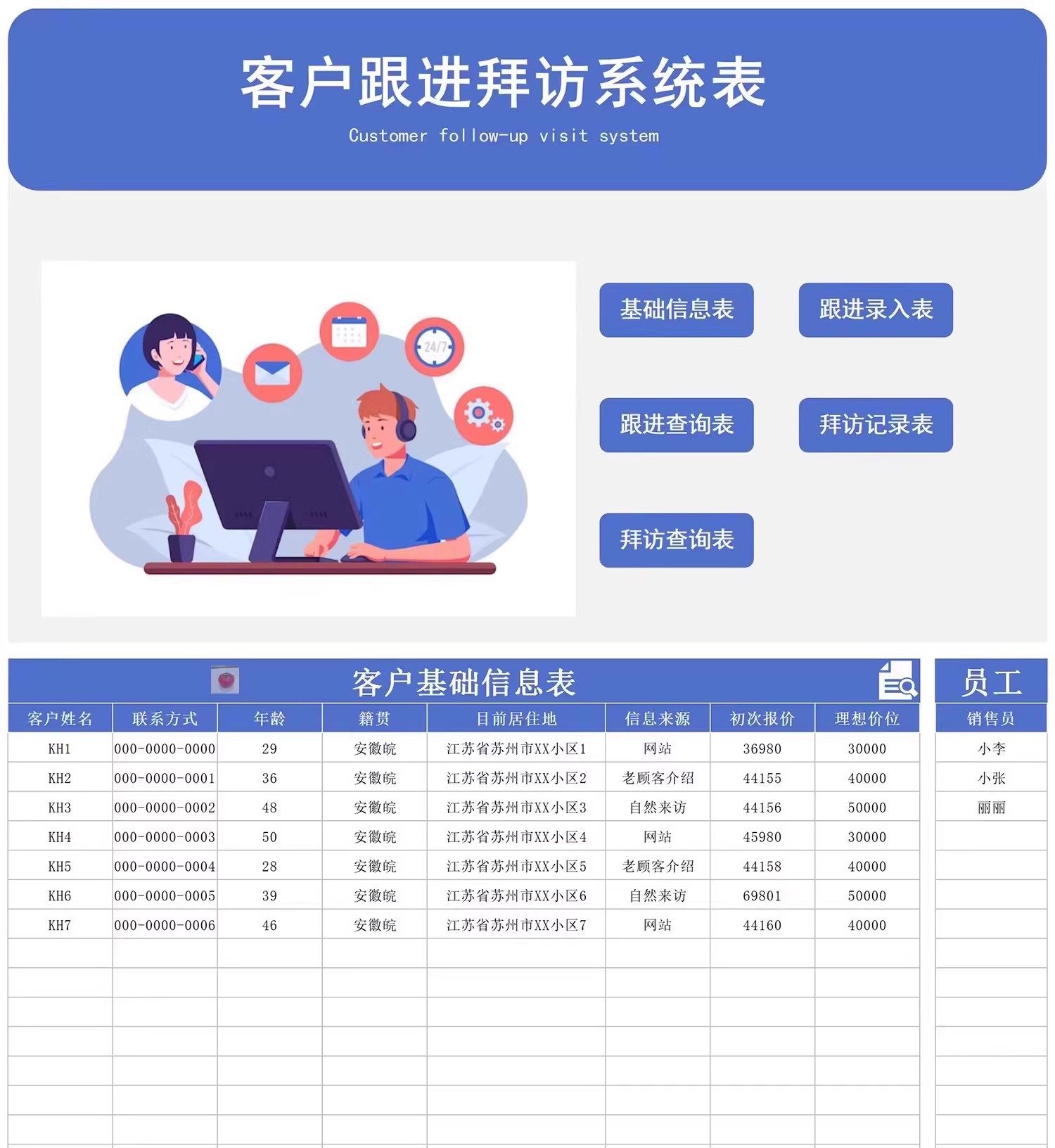 通过结构化设计的登记表格,快速录入客户姓名、联系方式、需求意向等关键信息。