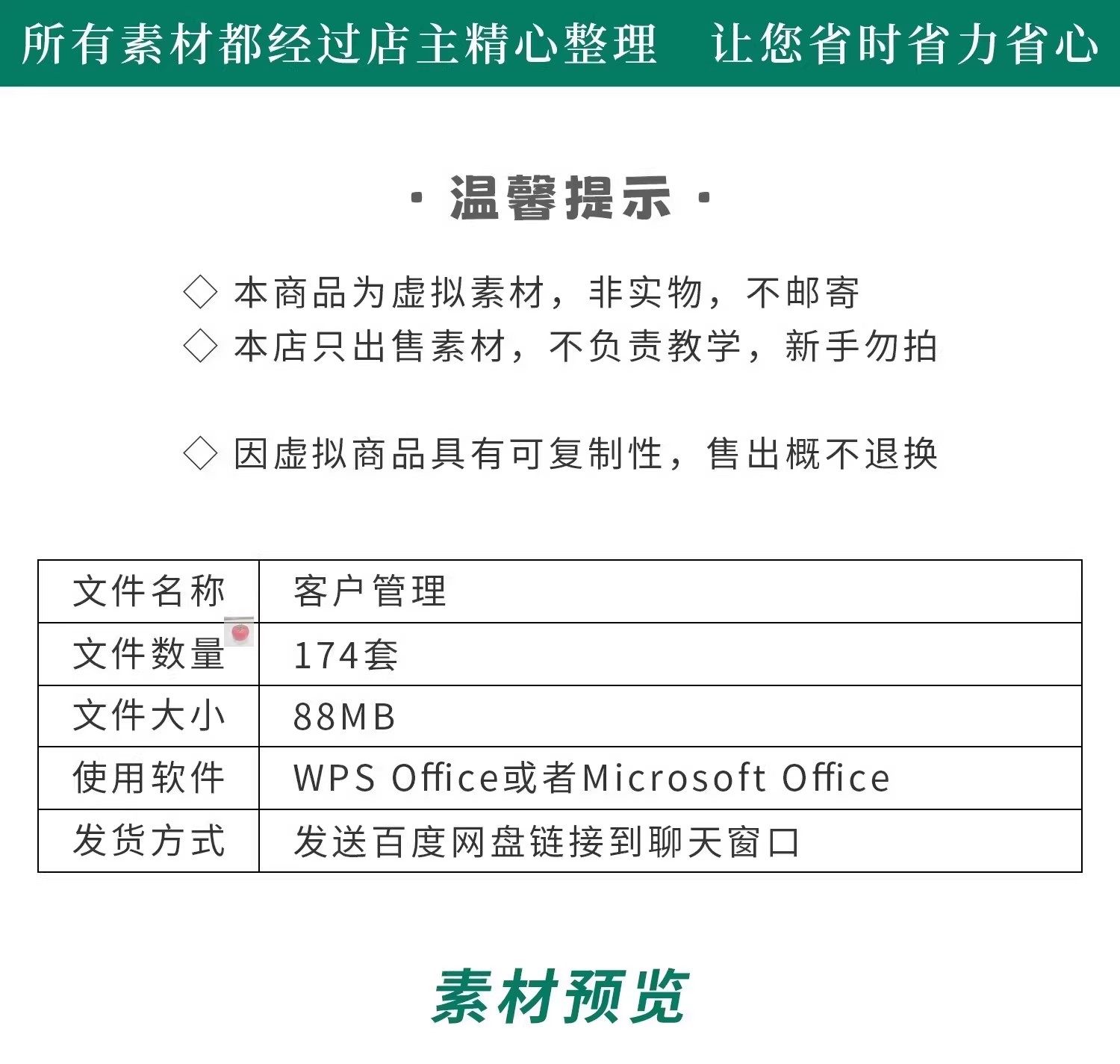想要高效管理客户信息?这款功能全面的CRM客户管理Excel表格为您提供从客户登记、数据统计到跟进回访、预约接待及销售订单处理的一站式服务。