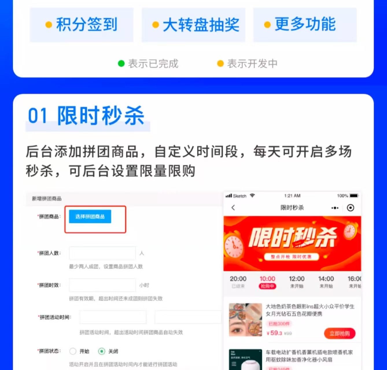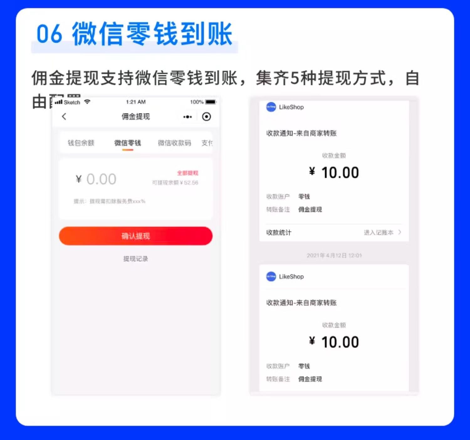 Likeshop内置丰富的营销工具,包括拼团、秒杀、优惠券、满减等常见玩法,同时具备完善的分销机制,支持多级分佣,助力平台快速裂变增长。