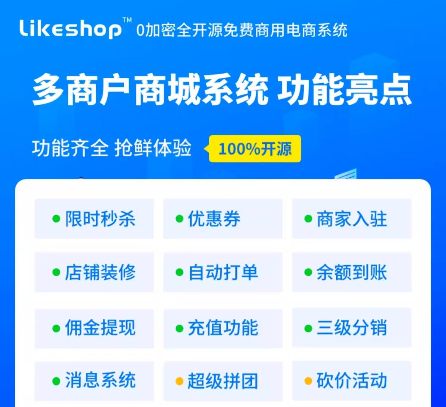 Likeshop最新推出的多商户商城系统,基于PHP开发,采用全开源架构,代码稳定可靠,经实际部署验证无任何运行问题,适用于构建B2B2C、多商户入驻及综合型平台商城。
