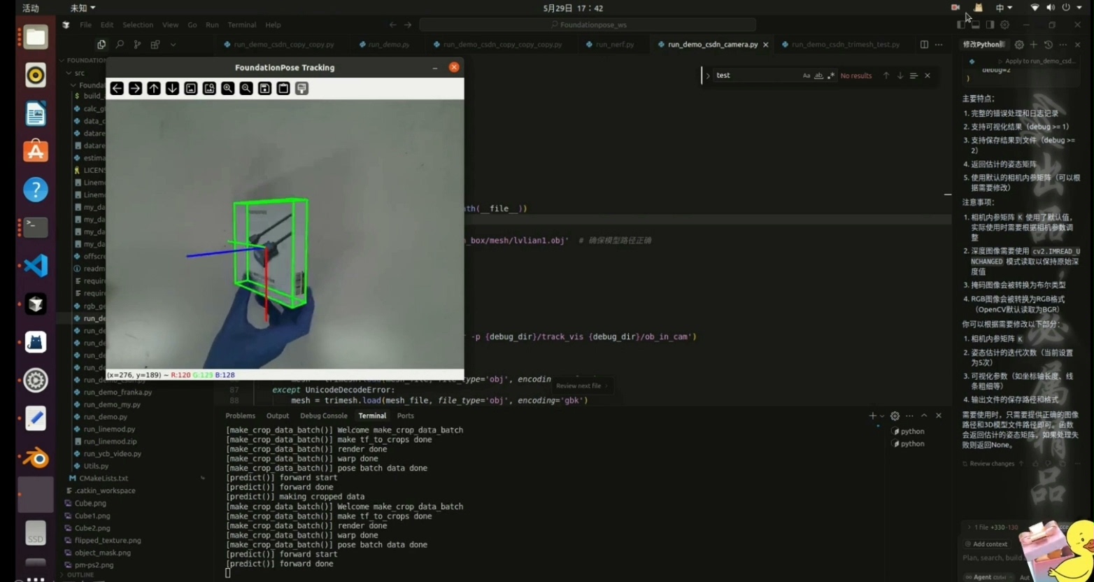 通过微调FoundationPose模型,实现对特定物体的高鲁棒性位姿估计,广泛应用于机器人抓取、AR增强现实等领域。