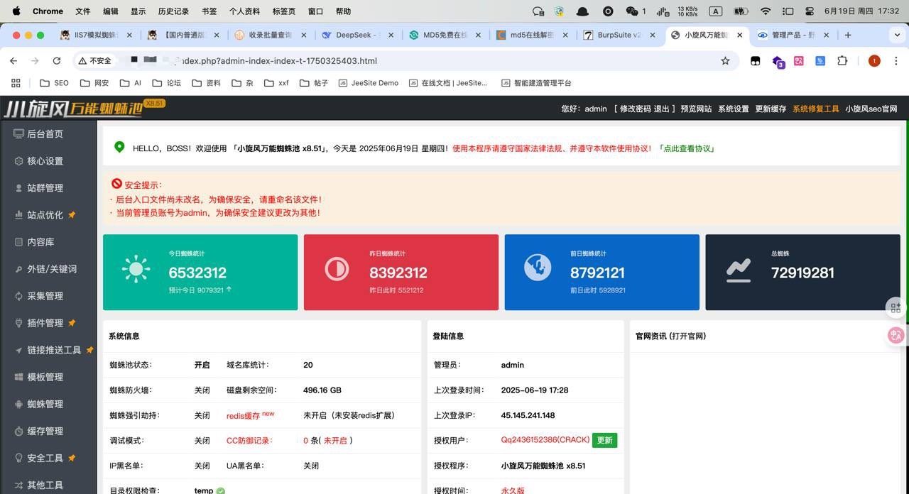 系统自动校验授权信息,避免因使用非官方修改版本导致的数据异常或服务中断,保障您的SEO运营持续高效运行。