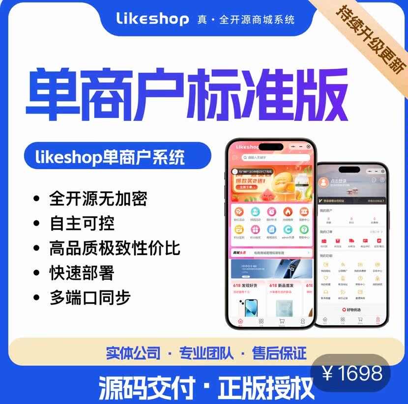 Likeshop单商户标准版商城系统专为B2C商业模式设计,广泛适用于单一商家独立运营的电商平台场景。
