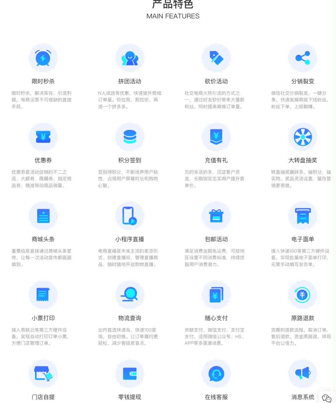 同时集成小程序直播功能,让商家可通过实时互动带货,增强用户粘性,提高成交率,紧跟社交电商发展趋势。