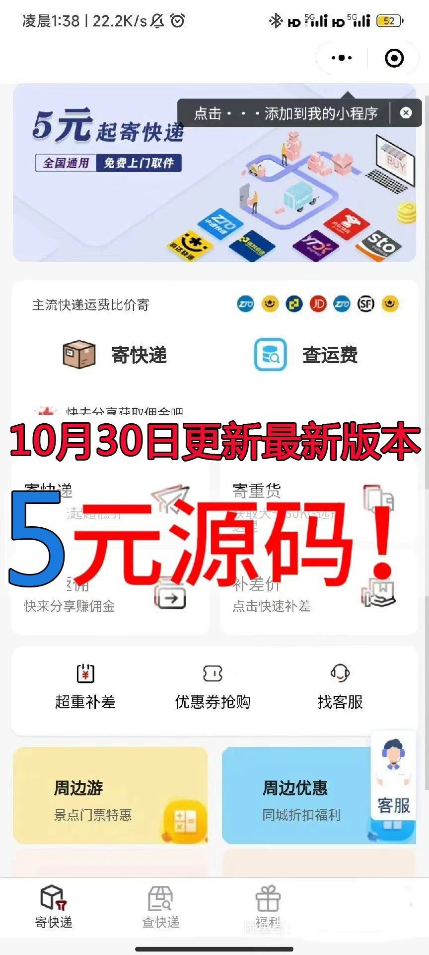 全新升级的寄快递小程序源码已于2025年10月30日正式发布!本次更新优化了核心功能与接口兼容性,适用于个人开发者及创业团队快速部署使用,仅需5元即可完整源码。