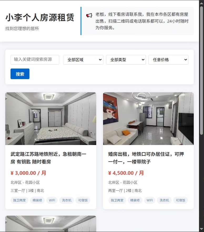 用户可通过该程序轻松实现房源发布、租金设置、图片上传、区域筛选、在线沟通等核心功能,提升租房交易效率,优化用户体验。