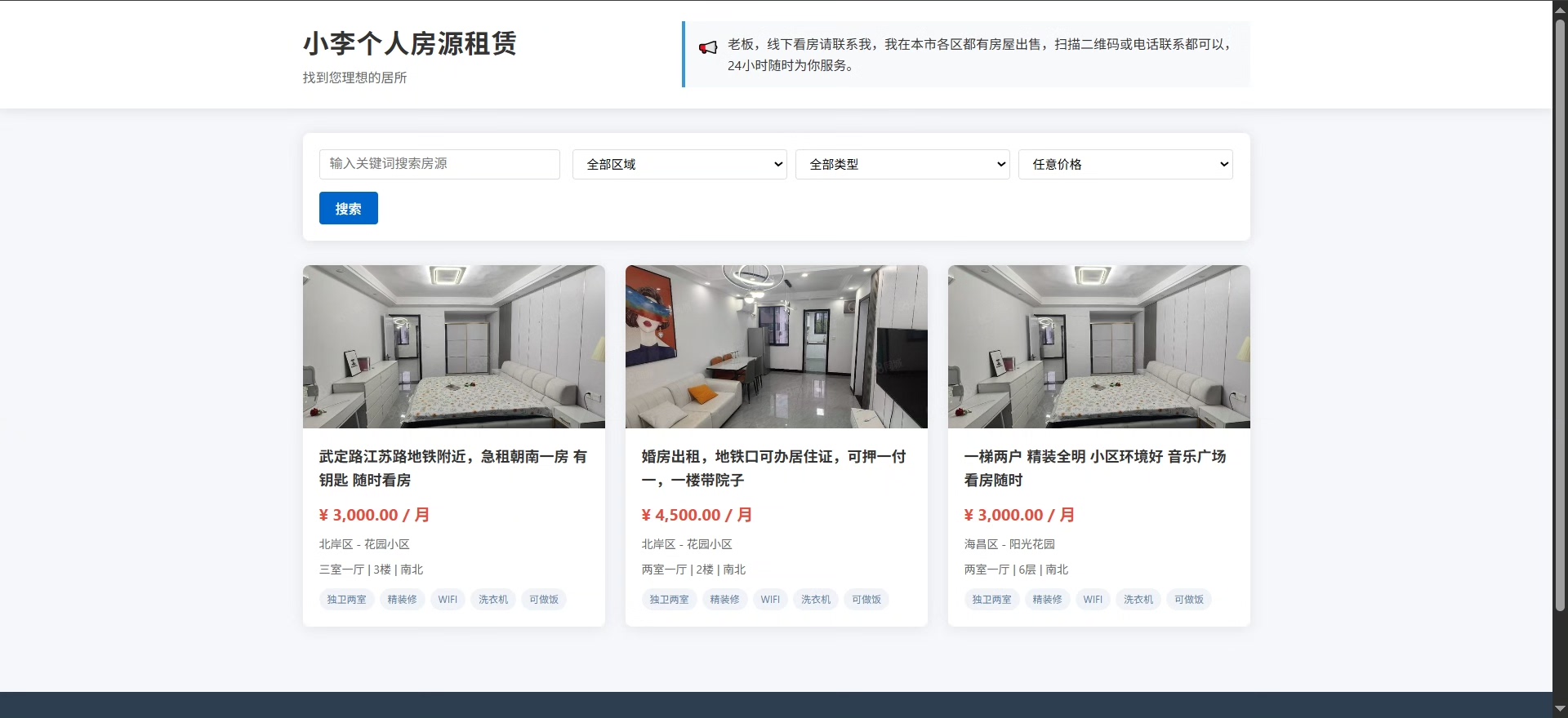 本系统是一款采用PHP语言结合MySQL数据库开发的在线房屋租赁平台源码,专为个人房东和租客打造,实现便捷高效的房源信息发布与查询功能。