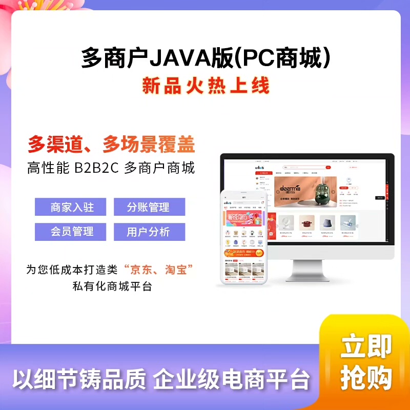 系统基于Java语言开发,专为多商户电商平台打造,具备高性能、高稳定性与易扩展等优势,适用于中大型电商项目部署。